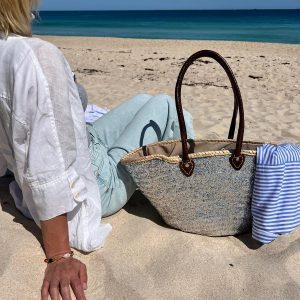 The Evil Eye Raffia Charm is handwoven using natural raffia and dyed in deep, coastal hues to represent the ancient talisman believed to ward off negative energy.
