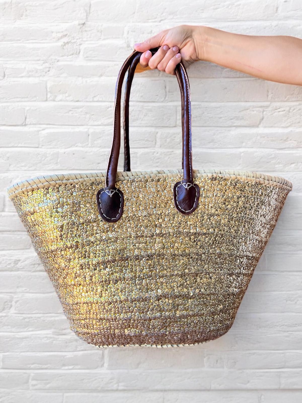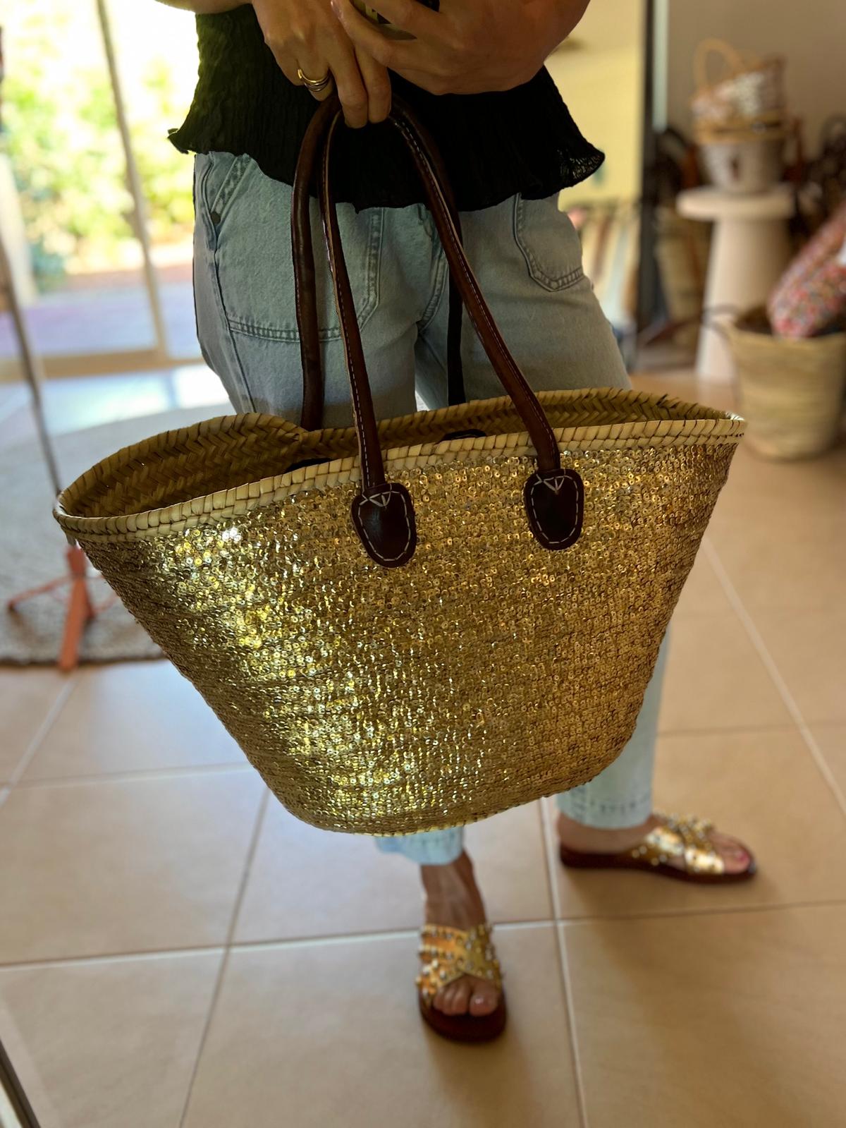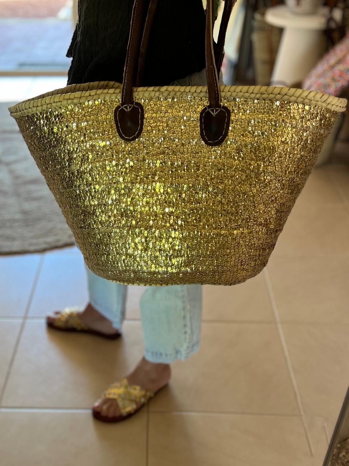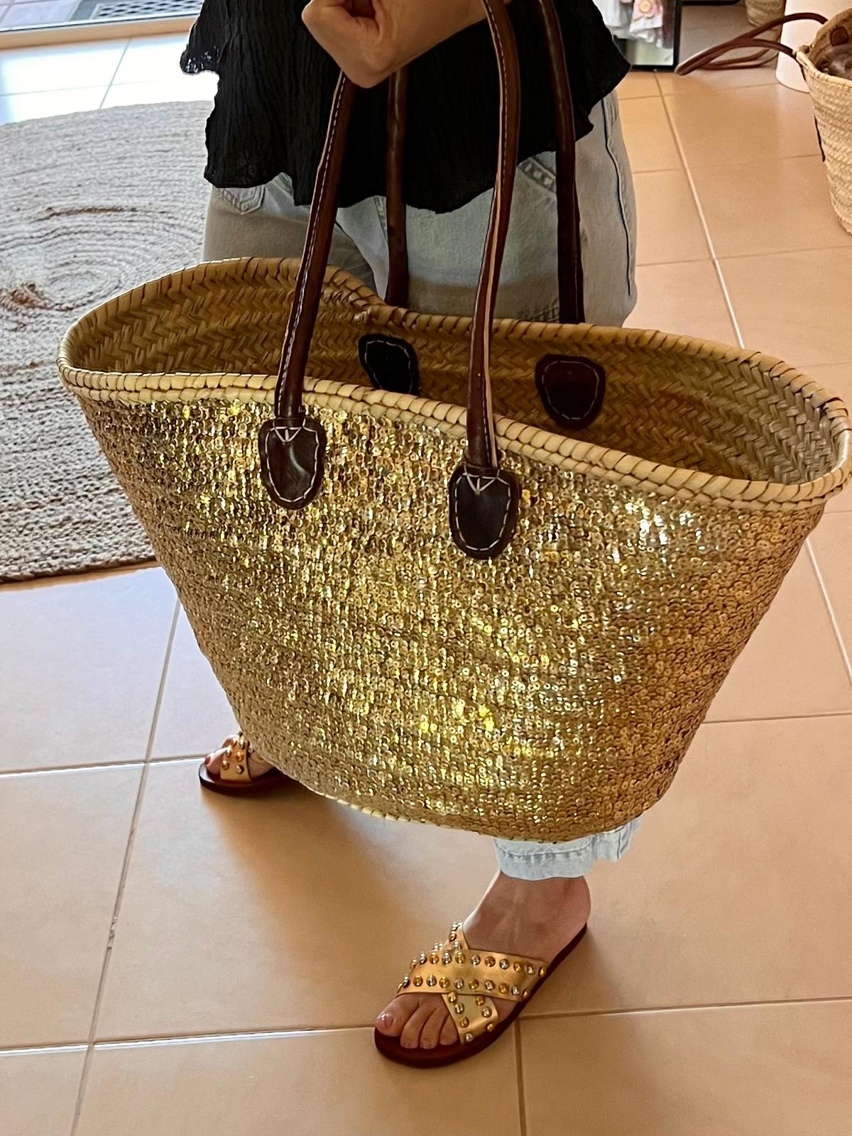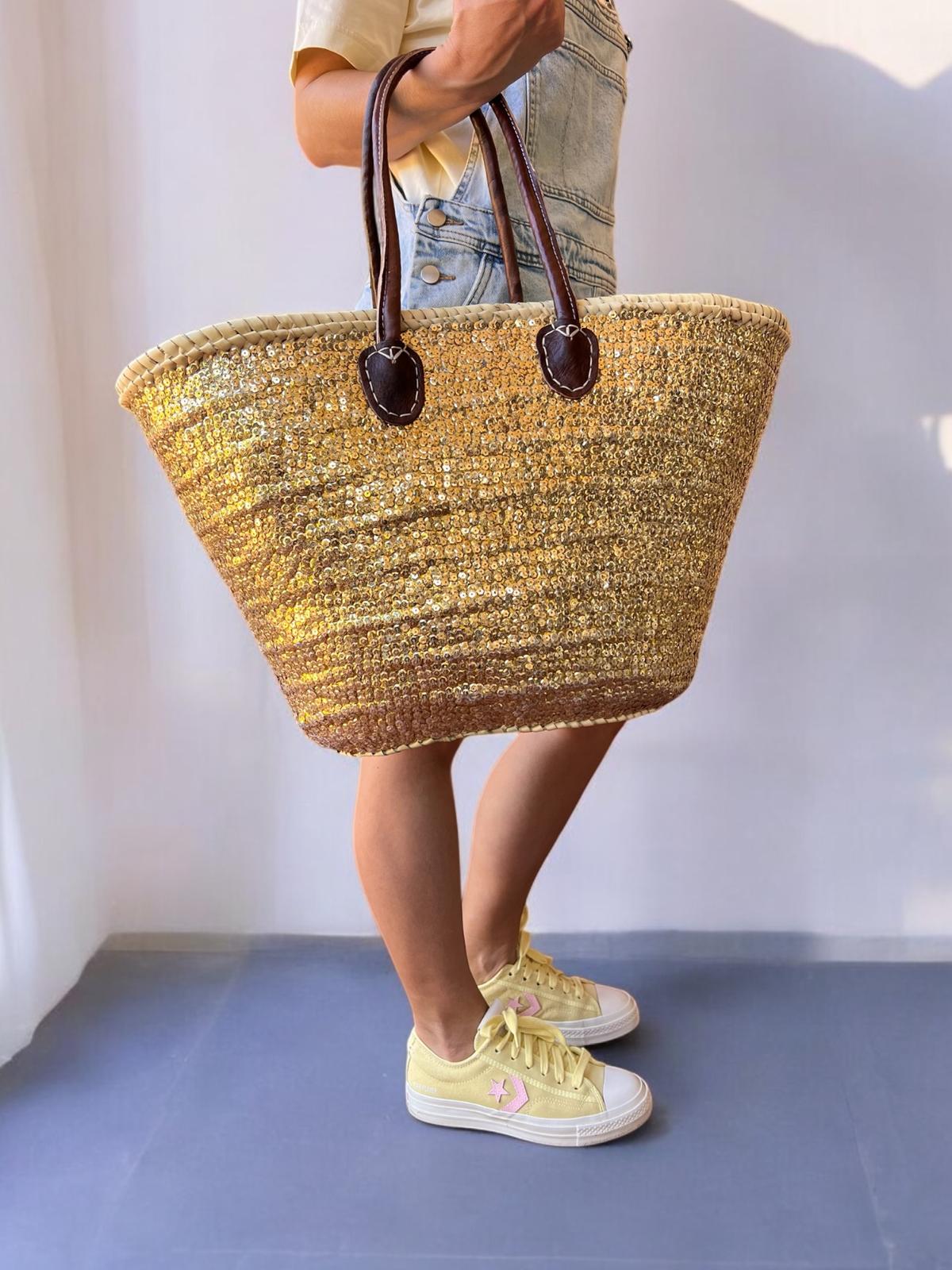 STRAW BAG TOTE – GOLD SEQUINS LARGE (Lining)